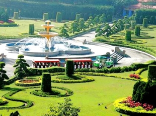 香格里拉樂園在景觀上,有浪漫的歐式花園、噴水池、可容納一千人用餐的豪華歐式餐廳;讓小孩子盡情玩樂的兒童樂園;供人膜拜的觀音佛像;深具特色的客家庄,其建築為典型的四合院式,內部陳列客家文物供遊客觀賞;栩栩如生的名人、神話人物雕像;有益健康的芬多精步道等,是一個展現大自然風采淋漓盡致的地方,適合全家旅遊渡假。